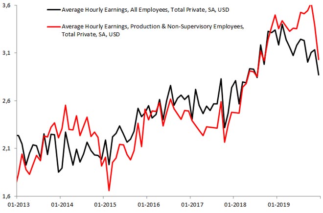 Detto questo, la decelerazione della crescita dei salari, questa volta alimentata dai posti di lavoro manifatturieri, è alquanto preoccupante, soprattutto se riflette l'incertezza del business (ricordate, gli indici ISM statunitensi sono diminuiti in modo significativo nel corso del 2019). Questo non dovrebbe essere il caso con il tasso di disoccupazione che è sceso a livelli record. Ciò renderà la Fed ancora meno propensa a considerare un aumento dei tassi di interesse, un fattore che potrebbe pesare sul dollaro.