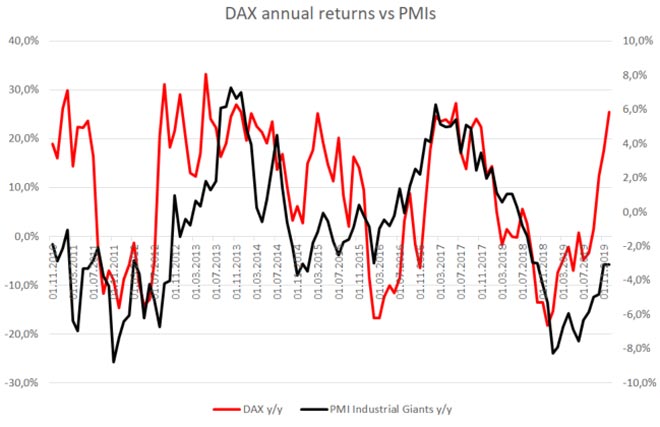 Le prospettive economiche in Europa dipenderanno dalla produzione tedesca, almeno in misura significativa. I rapporti di novembre non hanno portato a grandi progressi. Il rapporto industriale è sceso del 6,1% a / a, più che ad ottobre (-4,6%), sebbene in parte stagionale. In termini adeguati, la produzione è aumentata dell'1,1% da ottobre, più del previsto. Le buone notizie finiscono qui. Gli ordini e le esportazioni industriali sono crollati: rispettivamente dell'1,3 e del 2,3% m / m, mostrando una domanda debole (soprattutto esterna). Dal punto di vista del mercato, anche se c'è un'inversione di tendenza, sembra già essere preso in considerazione.