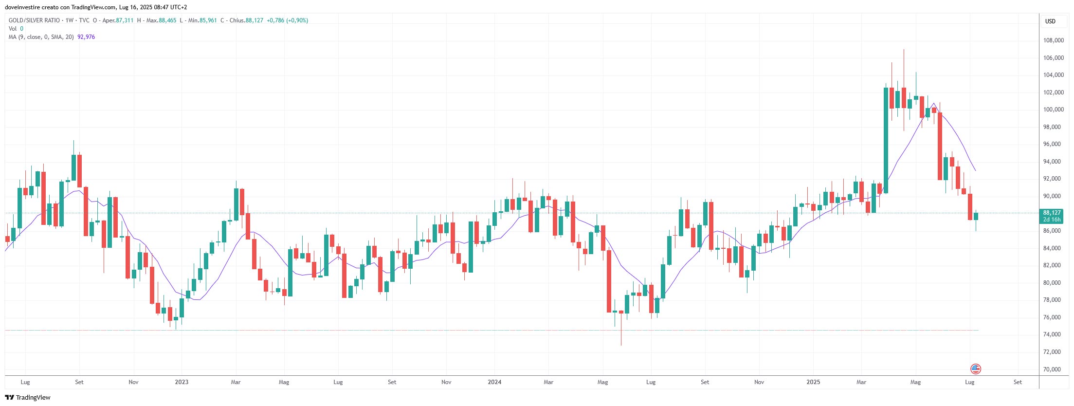 Tra le variabili più interessanti per chi vuole capire dove puntare c’è il rapporto oro-argento. Storicamente, questo indicatore oscilla tra 20:1 e 80:1. Oggi si aggira intorno a 88:1, un livello considerato insostenibile da molti analisti. Schiff evidenzia come, in fasi di stress economico, l’argento abbia spesso ridotto questo gap grazie alla sua volatilità e alla domanda industriale.