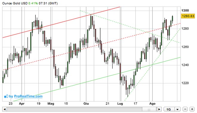 Nel momento in cui scriviamo l'ORO si trova a 1.293,66 dollari l'oncia in rialzo dello 0,45%.