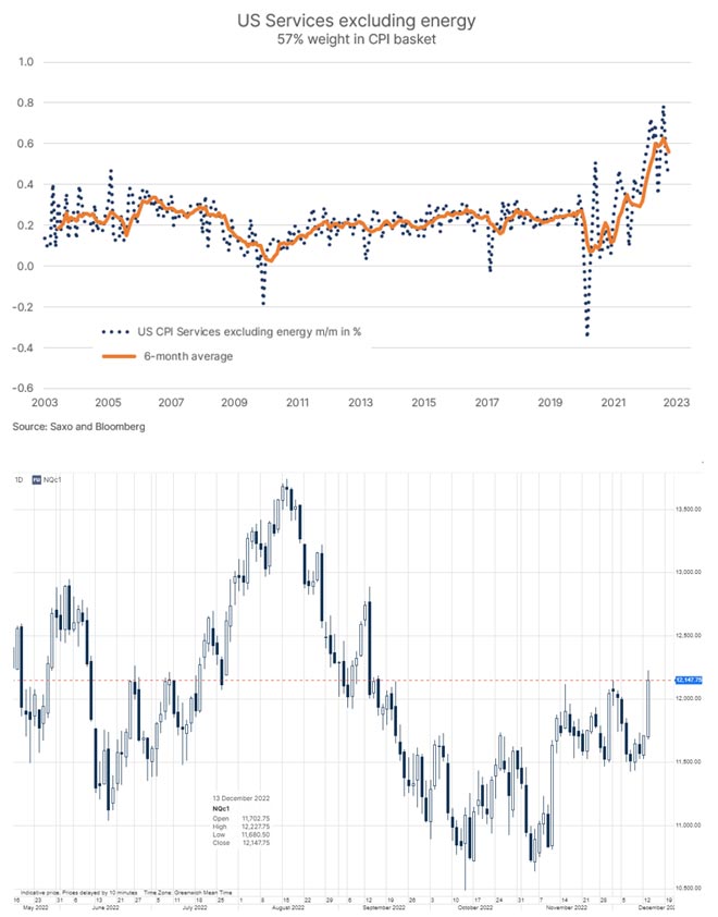 Mentre i dati sull'inflazione di novembre negli Stati Uniti hanno mostrato un altro mese di raffreddamento dell'inflazione, i titoli tecnologici statunitensi si sono rafforzati con il Nasdaq 100 in rialzo del 4%, tornando ai livelli più alti da settembre. L'entusiasmo per il ribaltamento dell'inflazione diminuirà con il tempo poiché la vera domanda è: a quale livello il tasso di inflazione si stabilizzerà? Sarà questo valore a determinare il costo del capitale a lungo termine.