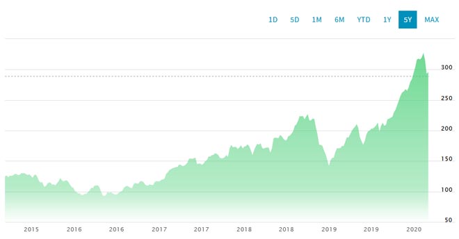 Questo il grafico delle azioni Apple degli ultimi 5 anni