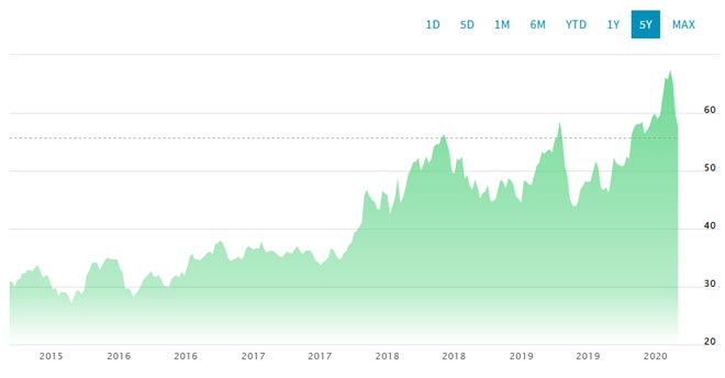 Le azioni Intel hanno raggiunto i massimi storici alla fine del mese di gennaio 2020 ad un passo dai 70 dollari per azione. L'azienda negativa che ha avuto il coronavirus sulle borse, ha trascinato in basso il titolo del gigante tecnologico di ben 25 punti percentuale, ed è proprio per questo il momento per investire sul azioni Intel.