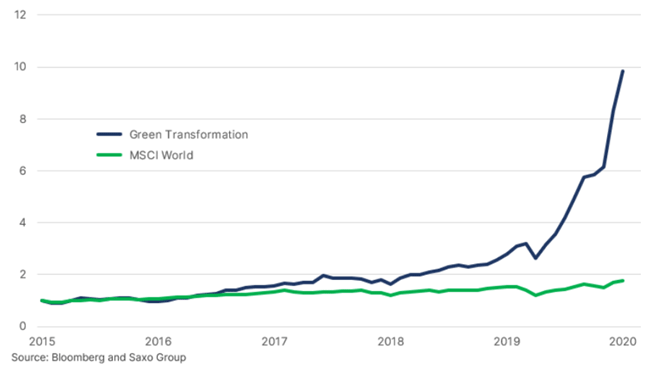 Quello della Green Transformation è stato uno dei temi che ha riscontrato più successo sui mercati azionari lo scorso anno e anche la sua performance year-to-date è stata tra le migliori in confronto ad altre categorie azionarie, cosa che sottolinea l’elevata attenzione verso le azioni Green. Tuttavia, tale successo si sta rivelando anche un limite per quanto riguarda la valutazione di queste azioni, che incorporano un premio in confronto al resto del mercato azionario.