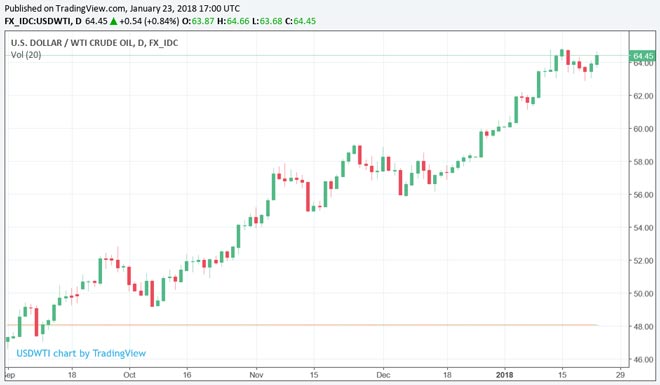 Il prezzo del Petrolio continua a correre questo martedì superando la soglia dei 64,50 dollari per barile.