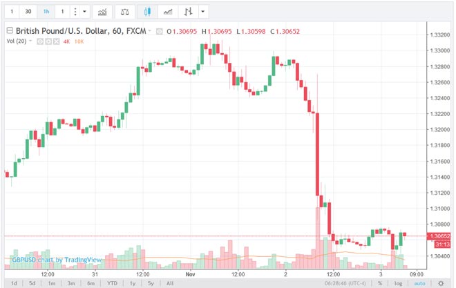 La sterlina ha da subito messo a il peggior deprezzamento contro l'Euro degli ultimi tre mesi; Sterlina giù anche nei confronti del Dollaro con il cambio Gbp/Usd crollato nella giornata di ieri a 1,32887 fino ai minimi a 1,30495.