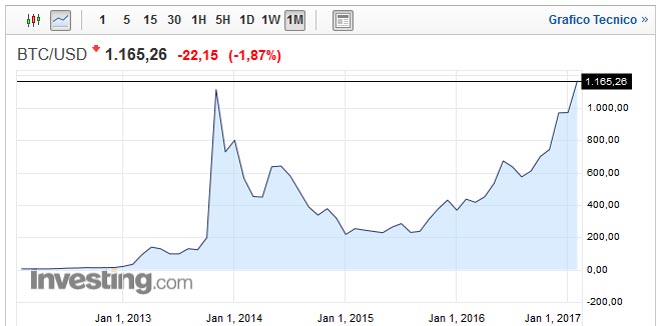 Una giornata da non dimenticare per che ha investito sui Bitcoin; questa mattina la cripto-valuta più conosciuta al mondo, hanno superato i massimi storici (1.161 dollari nel novembre 2013) raggiungendo la quotazione di 1.218 dollari.