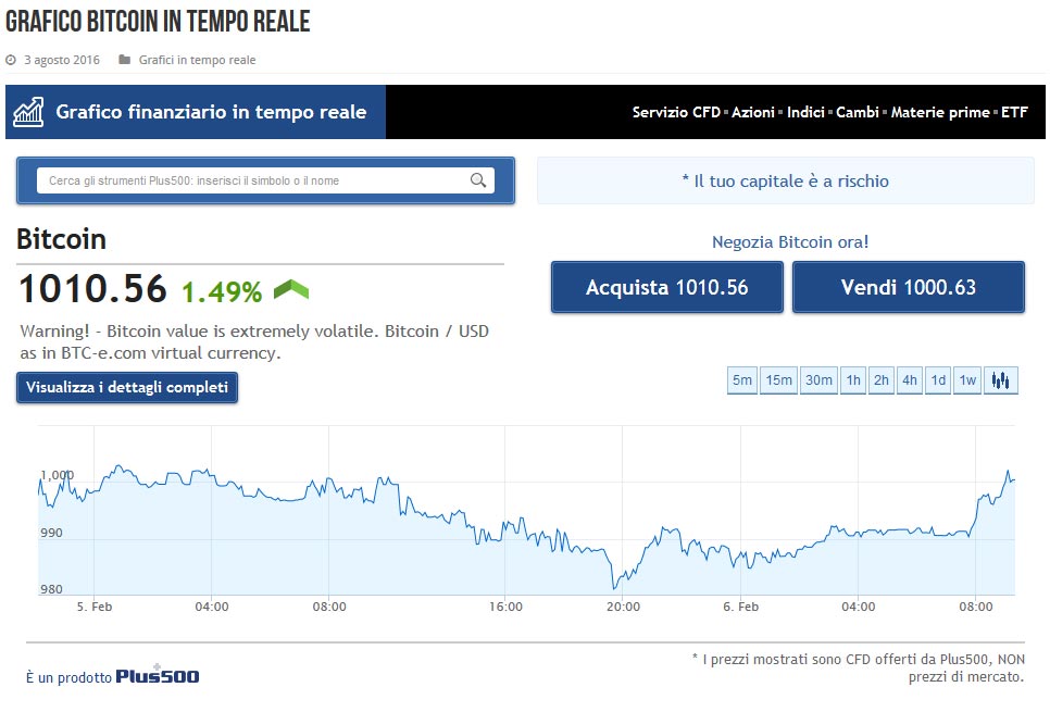 Questo il grafico di oggi 6 febbraio del Bitcoin: