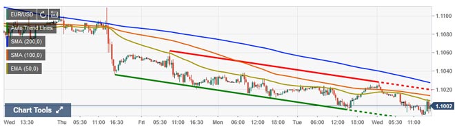 Ennesima giornata negativa per la moneta unica che durante le contrattazioni di questa mattina a visto i prezzi scendere sotto quota 1,100 raggiungendo un nuovo minimo annuale a 1,0991.