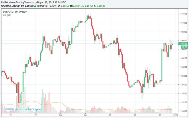 Nel momento in cui scriviamo il cambio eur/usd si trova a 1,16551 in rialzo dello 0,80%.