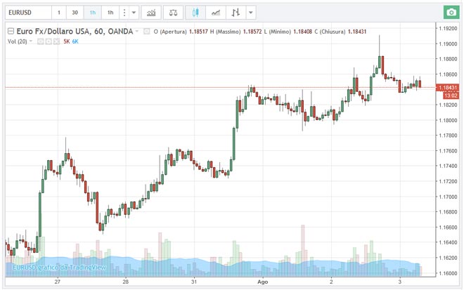 Il cambio euro/dollaro nel momento in cui scriviamo si trova a 1,17425 in calo dello 0,12%.