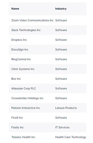 Di seguito la lista dei titoli WFH tra i più negoziati degli ultimi due anni: