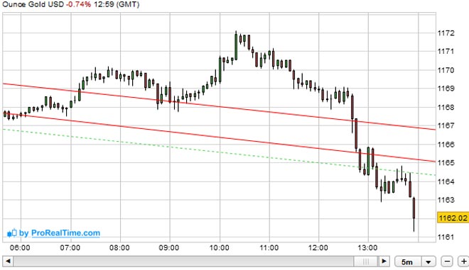 L'Oro prosegue la sua corsa al ribasso con le quotazioni che scendendo a 1.161,3 dollari l'oncia (minimo intraday), ormai prossimo al minimo degli ultimi 10 mesi.