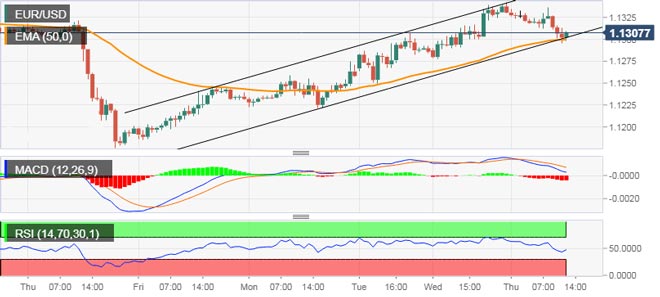 Gli orsi trascinavano momentaneamente la coppia al di sotto di una importante confluenza vicino al livello 1,1300 (supporto del canale di trend e l'EMA di 50 ore).