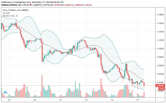 Prosegue la fase ribassista dell'euro nei confronti del dollaro USA, scendendo sui minimi da 28 mesi appena sopra a 1,09 dollari. Una situazione difficile per la moneta unica anche perché il dollaro continua ad essere forte, sostenuto anche da un mercato ottimista circa la possibilità di un prossimo accordo Usa/Cina sul commercio mondiale.