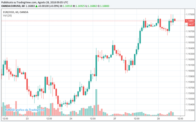 - La coppia di valute Euro/Dollaro sta prolungando il rally e si sta avvicinando al livello critico a 1,1700.