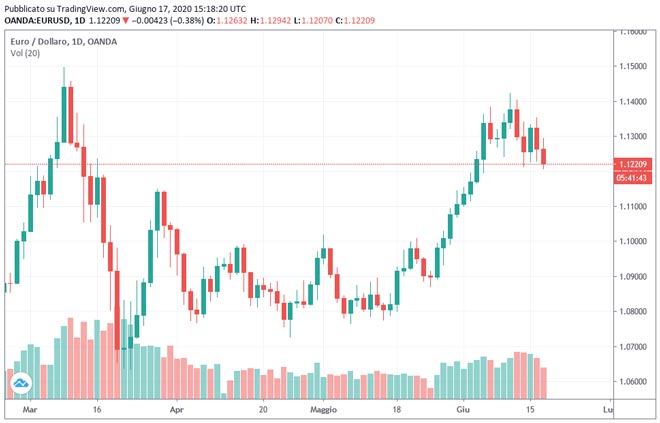 Livelli di supporto da monitorare sono posti a: 1,1210, 1,1170 e 1,1125