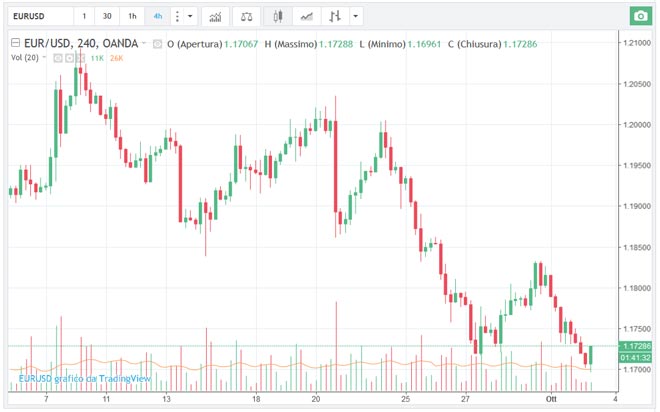 Il cambio euro/dollaro nel momento in cui scriviamo si trova a 1,17326 in ribasso dello 0,02%.