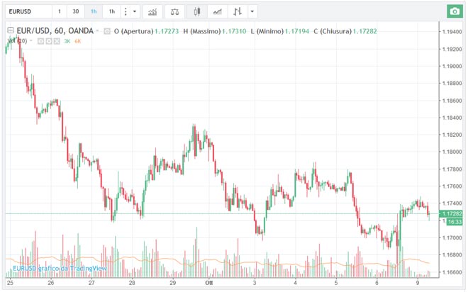Il cambio euro/dollaro nel momento in cui scriviamo si trova a 1,17284 in rialzo dello 0,02%.