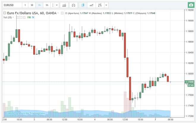 Il cambio euro/dollaro nel momento in cui scriviamo si trova a 1,1786 in rialzo dello 0,12%.