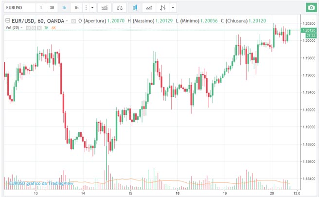 Il cambio euro/dollaro nel momento in cui scriviamo si trova a 1,20147 in rialzo dello 0,17%.