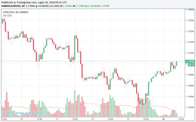Nel momento in cui scriviamo il cambio eur/usd si trova a 1,170804 in rialzo dello 0,20%.