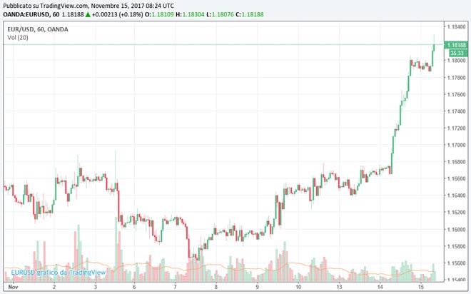 Il cambio euro/dollaro nel momento in cui scriviamo si trova a 1,18323 in rialzo dello 0,27%.
