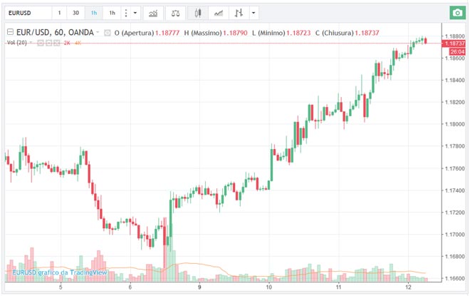 Il cambio euro/dollaro nel momento in cui scriviamo si trova a 1,18712 in rialzo dello 0,09%.