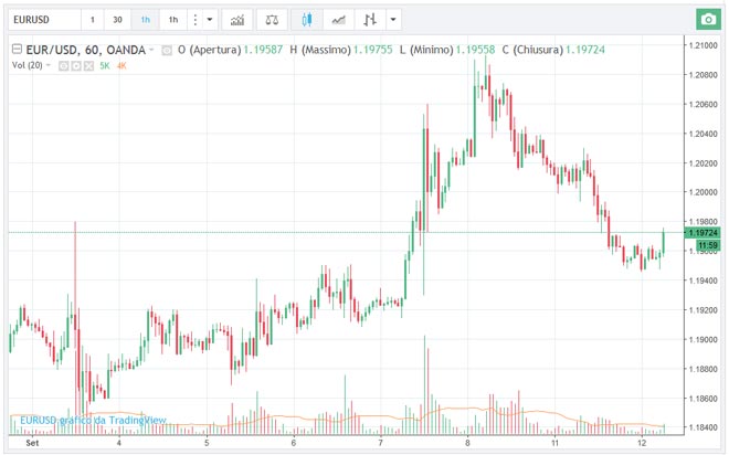 Il cambio euro/dollaro nel momento in cui scriviamo si trova a 1,1972 in ribasso dello 0,10%.