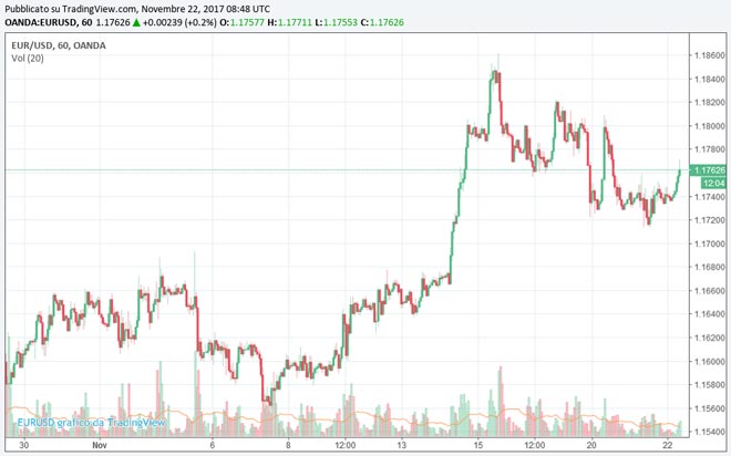 Il cambio euro/dollaro nel momento in cui scriviamo si trova a 1,1765 in rialzo dello 0,27%.