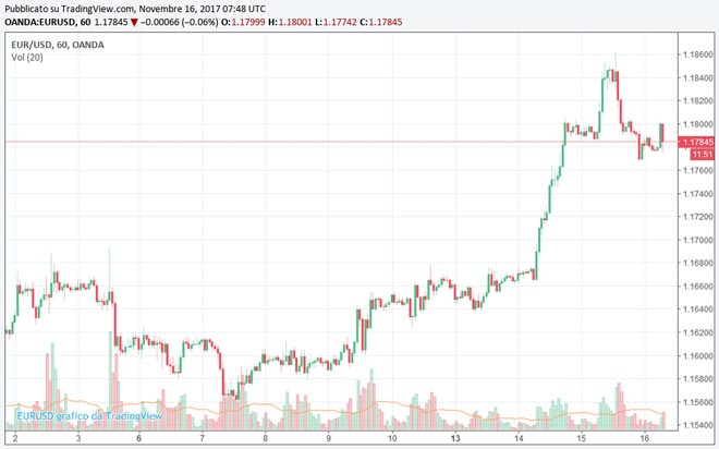 Il cambio euro/dollaro nel momento in cui scriviamo si trova a 1,1784 in rialzo dello 0,11%.