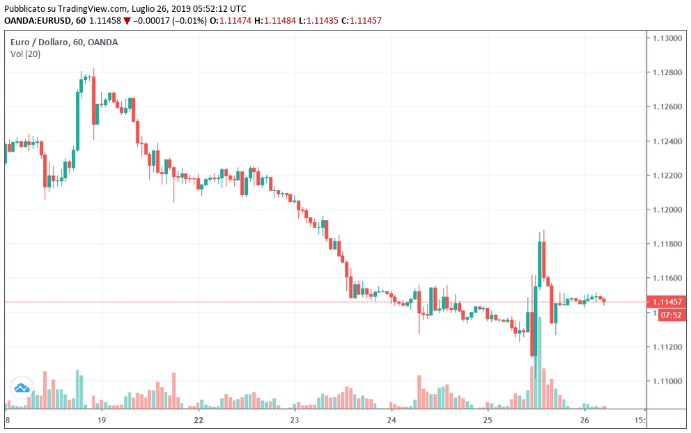 Una situazione che potrebbe spingere l'euro verso nuovi minimi con la possibilità di raggiungere quota 1,10 nei confronti del dollaro USA. Prima di questo però gli operatori attendono di sapere le decisioni del presidente della Federal Reserve (Fed) Jerome Powell alla riunione del FOMC della prossima settimana.