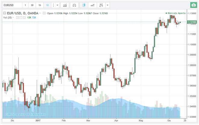 Il cambio euro/dollaro nel momento in cui scriviamo si trova a 1,1217 in rialzo dello 0,07%.