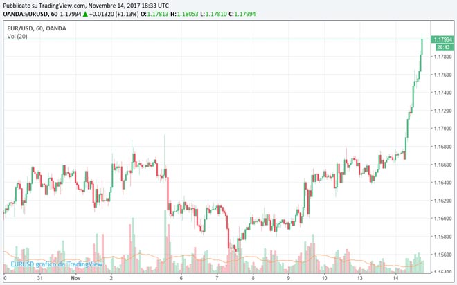 Nel momento in cui scriviamo il cambio euro/dollaro è in rialzo dell'1,16& a 1,18008.