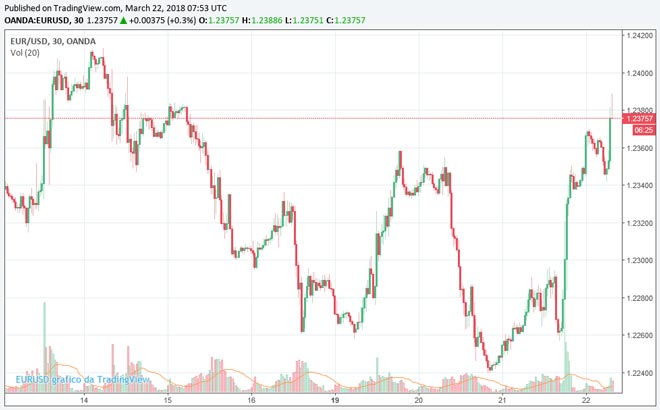 Nel momento in cui scriviamo il cambio eur/usd si trova a 1,23670 in rialzo dello 0,11%.