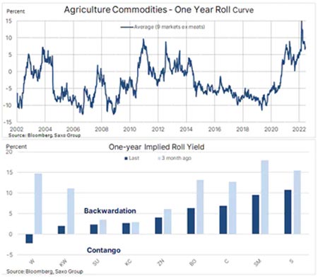 Tuttavia, le condizioni di allentamento dal picco di marzo hanno visto il grano CBOT passare da un Backwardation, quando il prezzo corrente, o prezzo spot, di un’attività sottostante è superiore ai prezzi scambiati nel mercato dei futures, vicino al 15% ad un piccolo Contago.