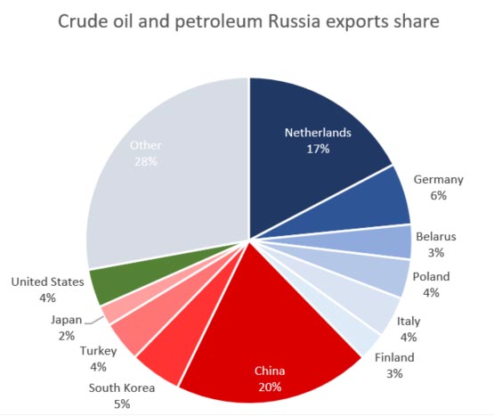 L'Europa è il principale destinatario del petrolio russo. Fonte: Bloomberg, XTB Research