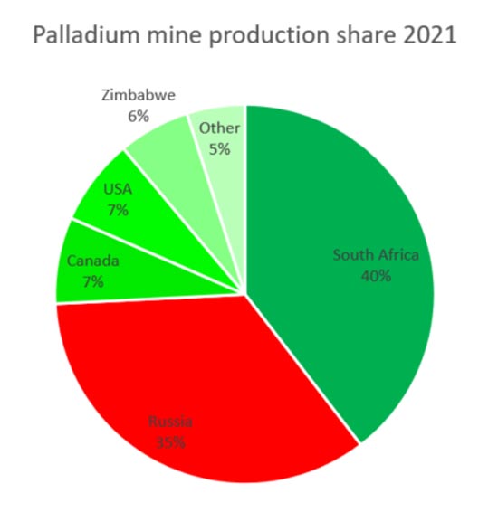 La Russia è un importante produttore di palladio, che è un metallo chiave nella produzione di convertitori catalitici per il settore automobilistico. Oggi i prezzi del palladio sono aumentati di quasi l'8%.