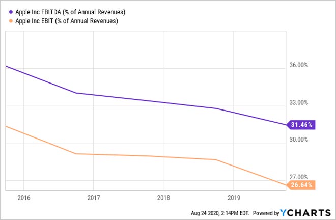 Tutto sommato, abbiamo visto la redditività operativa assoluta di Apple e i margini operativi deteriorarsi visibilmente.