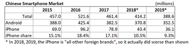 Come possiamo vedere, negli ultimi cinque anni (fino al 2019), Apple ha assistito a un crollo delle vendite e della quota di mercato di iPhone in Cina.