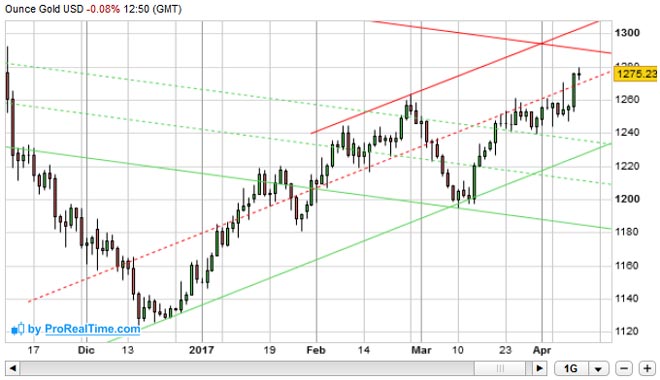Restano alti i timori per un attacco militare da parte degli Stati Uniti contro Siria e Corea del Nord e per le elezioni presidenziali francesi. Un clima che ha fatto salire la domanda degli investimenti meno rischiosi e in particolare l'ORO e lo YEN, considerata valuta rifugio ha toccato i massimi degli ultimi 5 mesi.