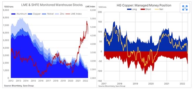In aggiunta, Pechino ha accelerato sulla transizione energetica, soprattutto in Europa, dove l'eliminazione della dipendenza dalle forniture energetiche russe è diventata un obiettivo importante e il mercato potrebbe rapidamente spostare l'attenzione dalla domanda alla scarsa offerta. Le scorte di metalli industriali chiave, dall'alluminio e dal rame al nichel e allo zinco, presso le riserve monitorate in Borsa sono a livelli minimi pluriennali e, con un'offerta aggiuntiva non semplice, una prospettiva di fornitura minore può aiutare il settore a trovare un punto di partenza e spostarsi più in alto.