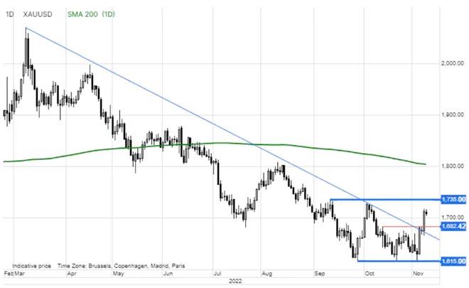 Con il supporto saldamente stabilito a 1615$ e dopo la rottura di martedì al di sopra dell'area di supporto di 1675-80$, il mercato si concentrerà ora sul livello chiave di 1735$, una rottura al di sopra del quale potrebbe segnalare un minimo nel mercato e l'inizio di un recupero.