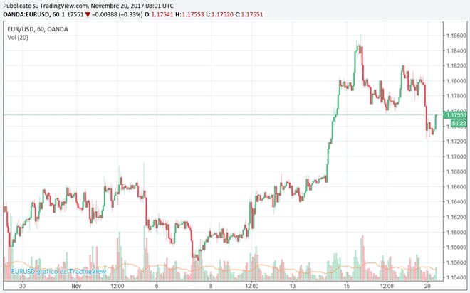 Il cambio euro/dollaro nel momento in cui scriviamo si trova a 1,1755 in ribasso dello 0,26%.