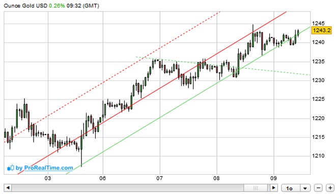 Durante le ore di trading di ieri, l’Oro ha aumentato il suo valore da 1.233 a 1.241 dollari l’oncia. Nella giornata odierna il metallo prezioso si trova in prossimità dei 1.243 dollari, livello di resistenza importante.