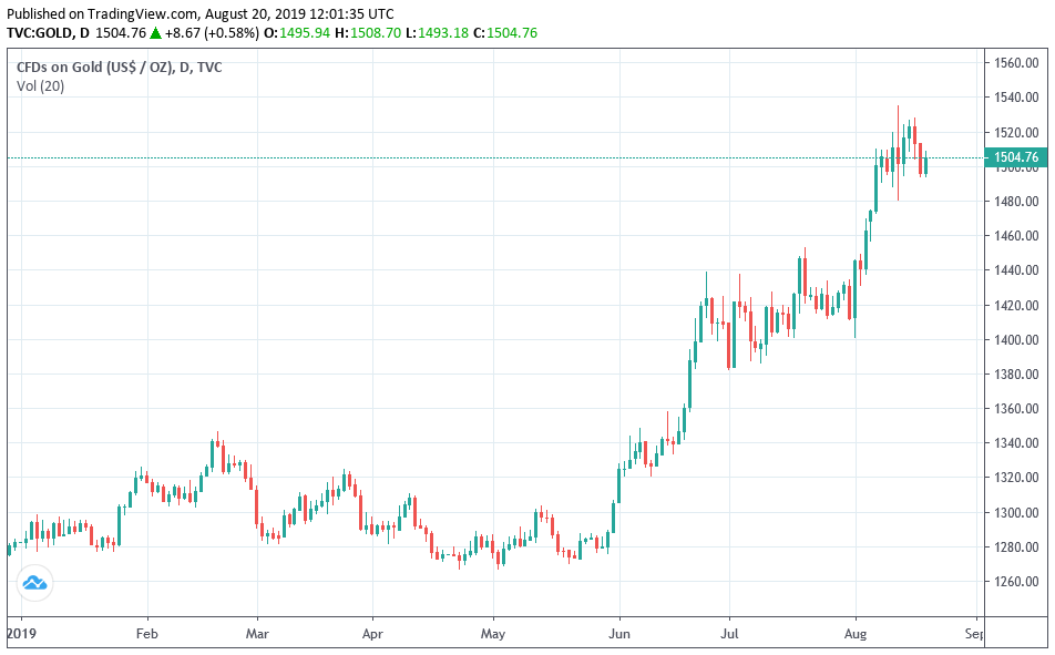 Nel momento in cui scriviamo l'oro spot sale dello 0,70% a $ 1.506.68 dollari, dopo essere sceso al minimo di una settimana a 1.492,10 con una perdita superiore all”1,2% nella giornata di ieri, il più grande calo percentuale giornaliero in un mese. Tuttavia, i prezzi sono aumentati di quasi il 17% quest'anno e di oltre $ 80 finora questo mese.