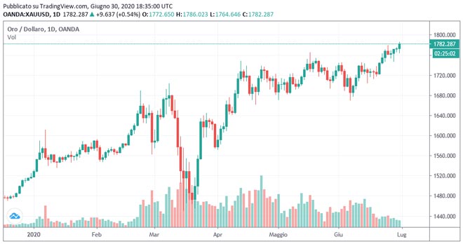 Tecnicamente se il prezzo dell'oro dovesse mantenersi sopra quota 1.780 dollari, si darà spazio ad ulteriori rialzi.
