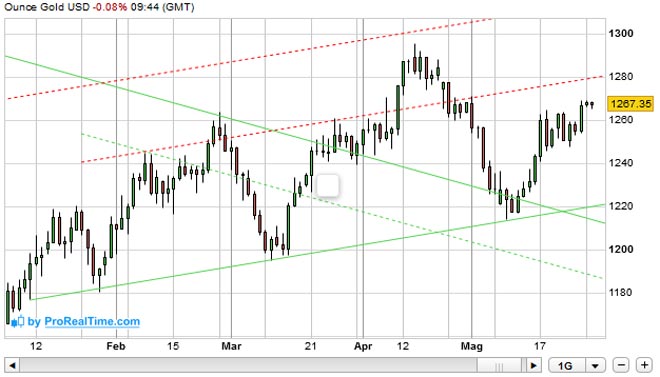 Se il prezzo dell'oro dovesse continuare a salire rompendo il livello di resistenza a 1.273 dollari, l'obiettivo sarà quello di raggiungere e testare i 1.251 dollari e se il trend continua, il prossimo livello importante è a 1.289 dollari l'oncia.