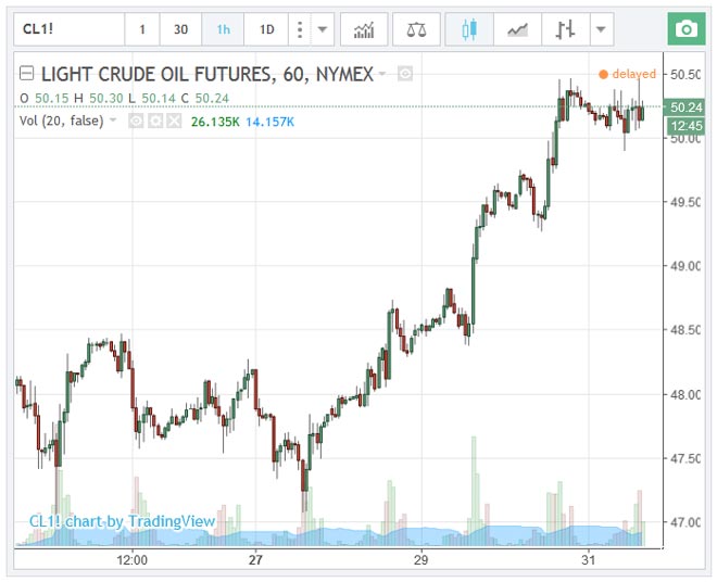 Il prezzo del petrolio si appresta a chiudere il mese di Marzo in leggera flessione dopo tre giorni consecutivi di rally che hanno portato le quotazioni del Light Crude Oil sopra quota 50 dollari al barile.