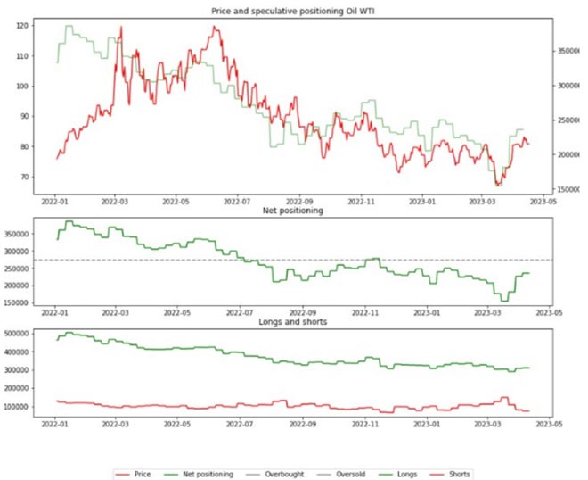 “La storia mostra che potremmo assistere a uno scenario simile a quello del periodo 2011-2014, quando il prezzo è rimbalzato su una media di 5 anni ma allo stesso tempo non si è discostato dalla media di 1 anno di più di 2 deviazioni standard” ha sottolineato Walid Koudmani, Chief Market Analyst di XTB: “Il numero di posizioni Short aperte sul petrolio è diminuito significativamente nelle ultime settimane, il che ha portato a un aumento del posizionamento netto al livello più alto da febbraio. La correlazione tra posizionamento speculativo e prezzo è stata molto forte di recente; quindi, ci si può aspettare che i prezzi salgano una volta che il numero di posizioni Long inizia a risalire.”